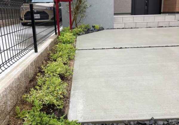 本日は植栽です。 シンボルツリーにオリーブです。 フェンス沿いにした草でアレンジしました。 ポストの赤色と緑のバランスがいいです...