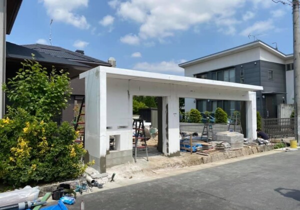 ゲートと躯体が進んでまいりました。 グランドウォールという軽量の製品です。 仕上げはタイル、塗装と様々な仕上げが選べばます。 完...