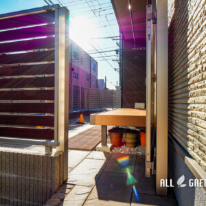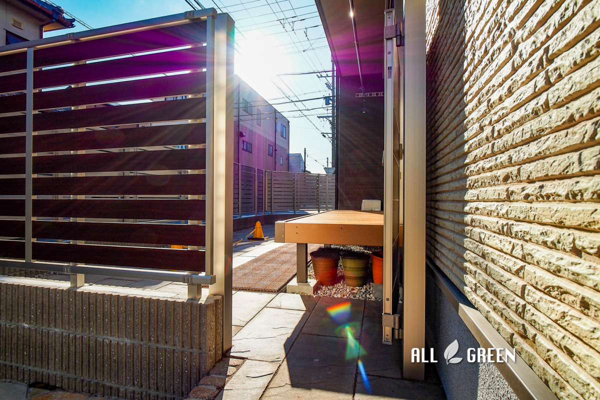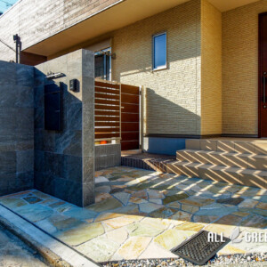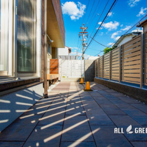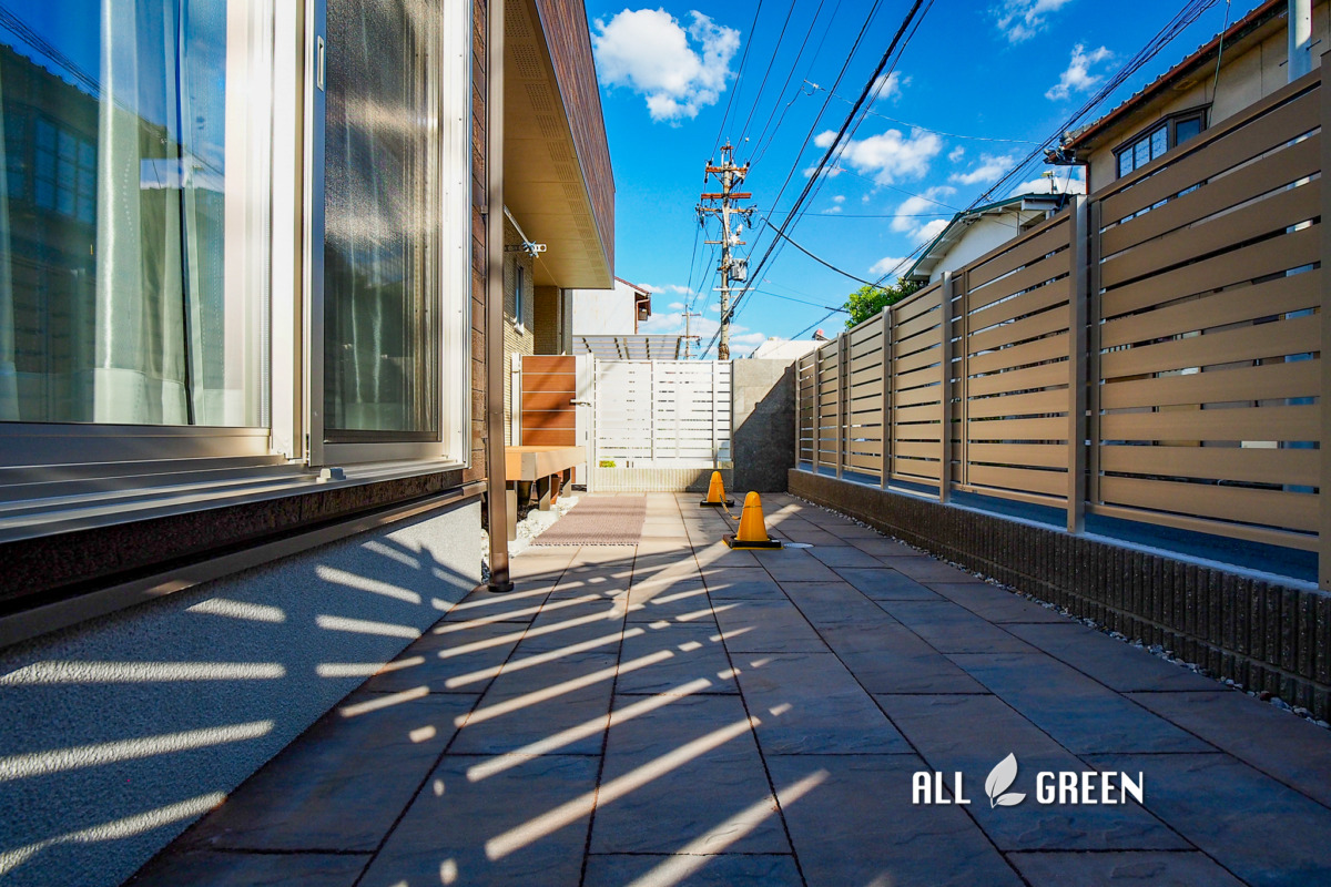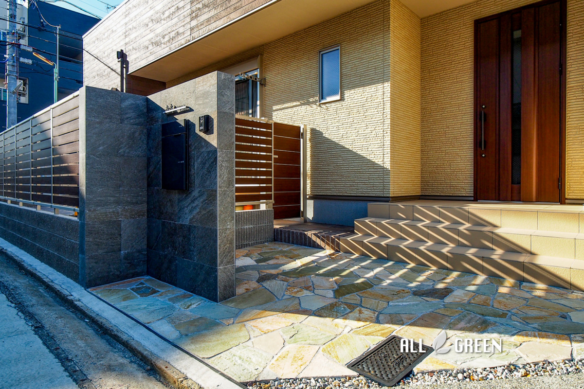名古屋市中村区にある異なる素材で床面をデザインした新築外構