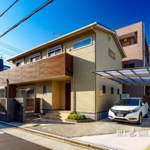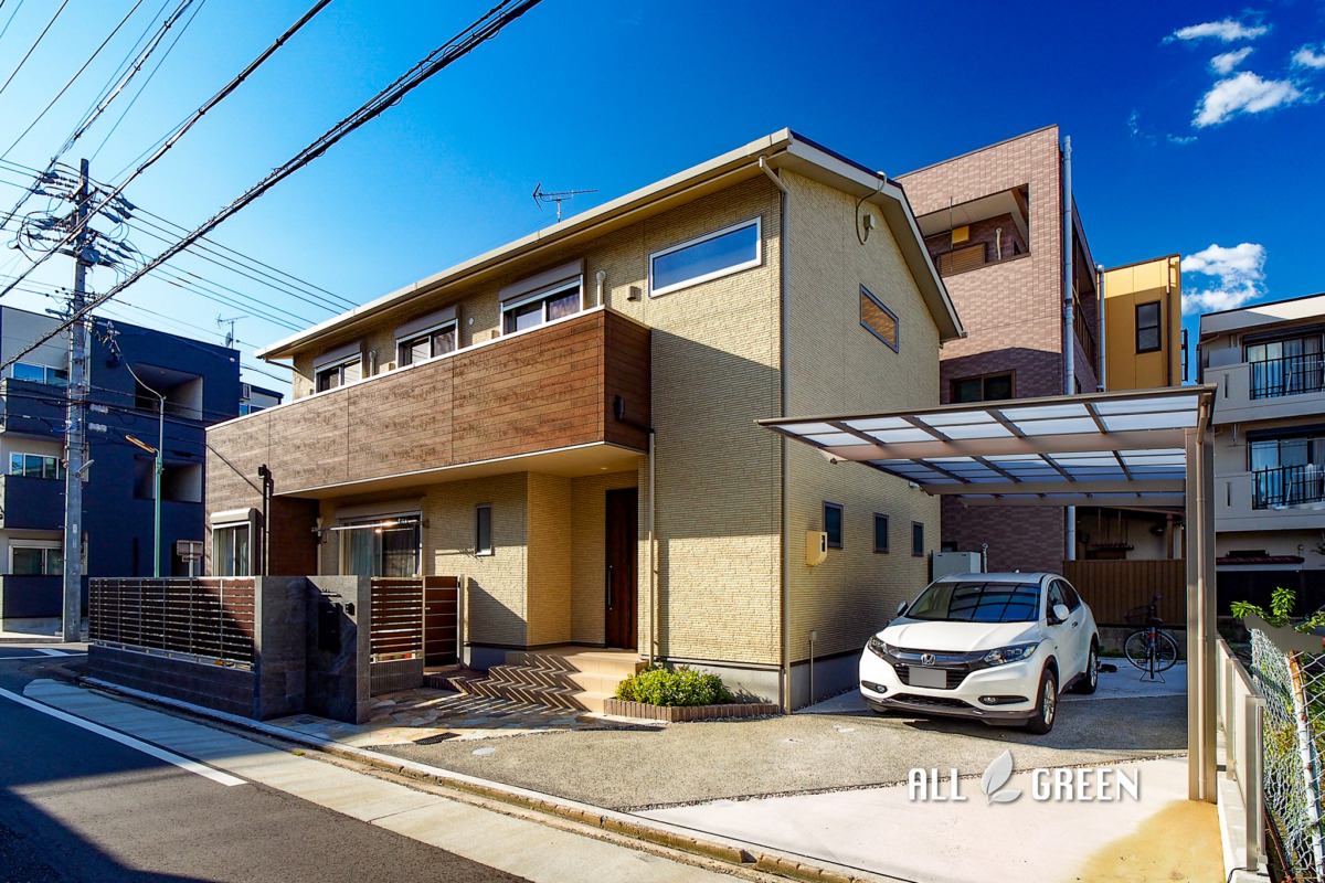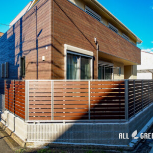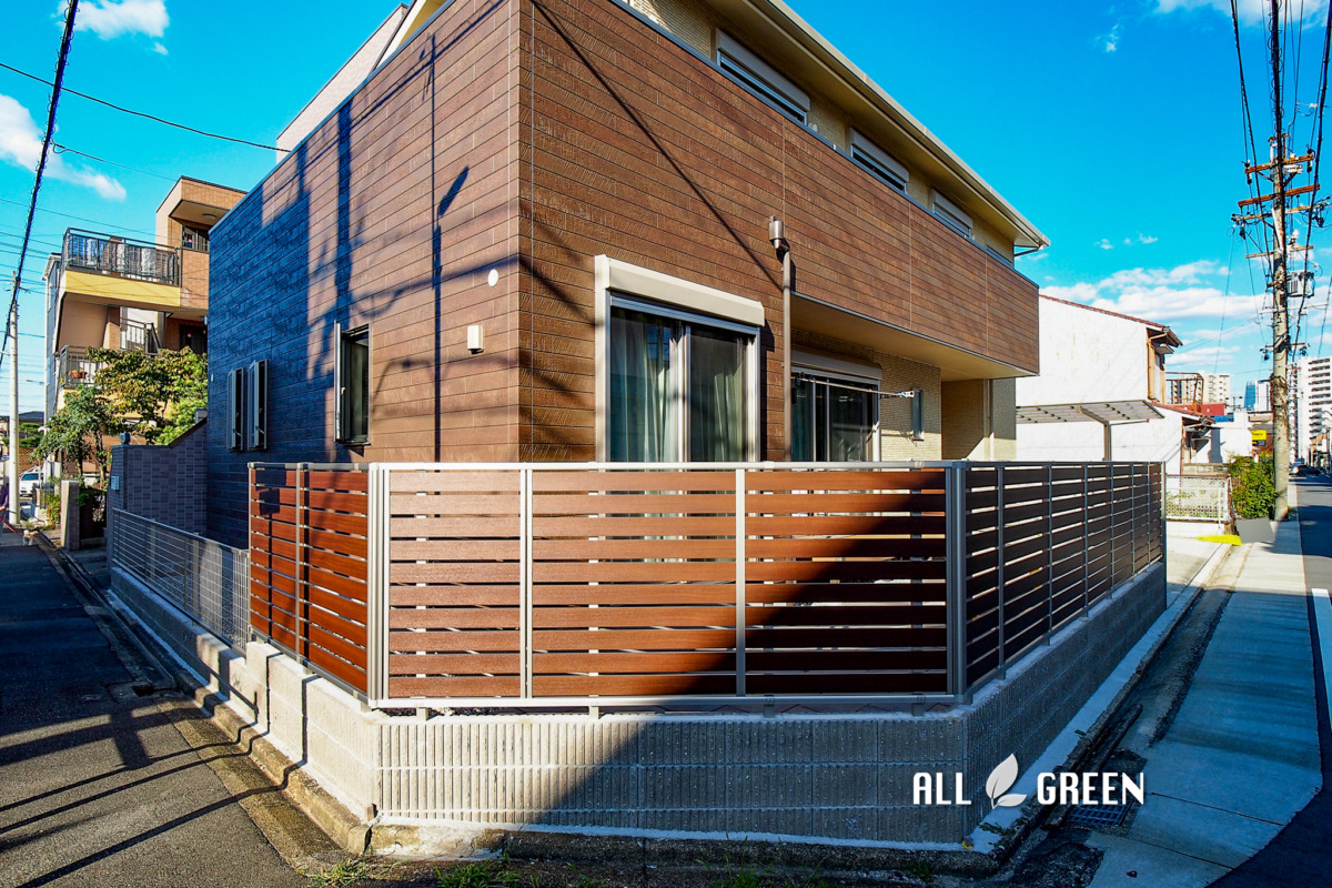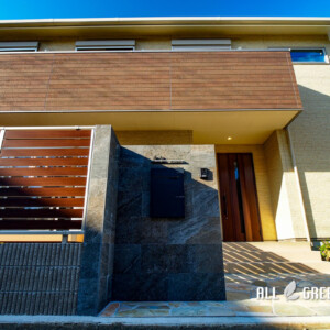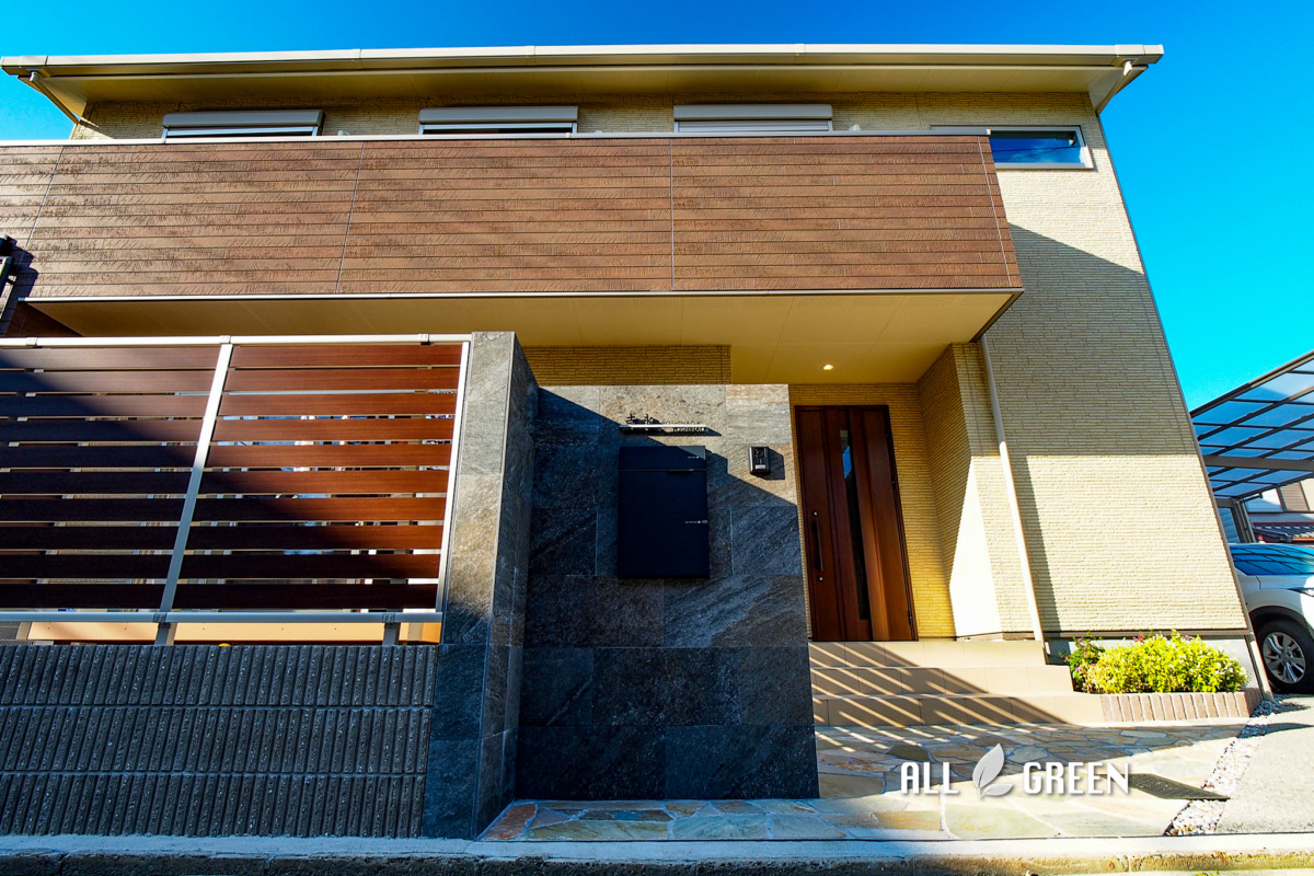 名古屋市中村区にある異なる素材で床面をデザインした新築外構