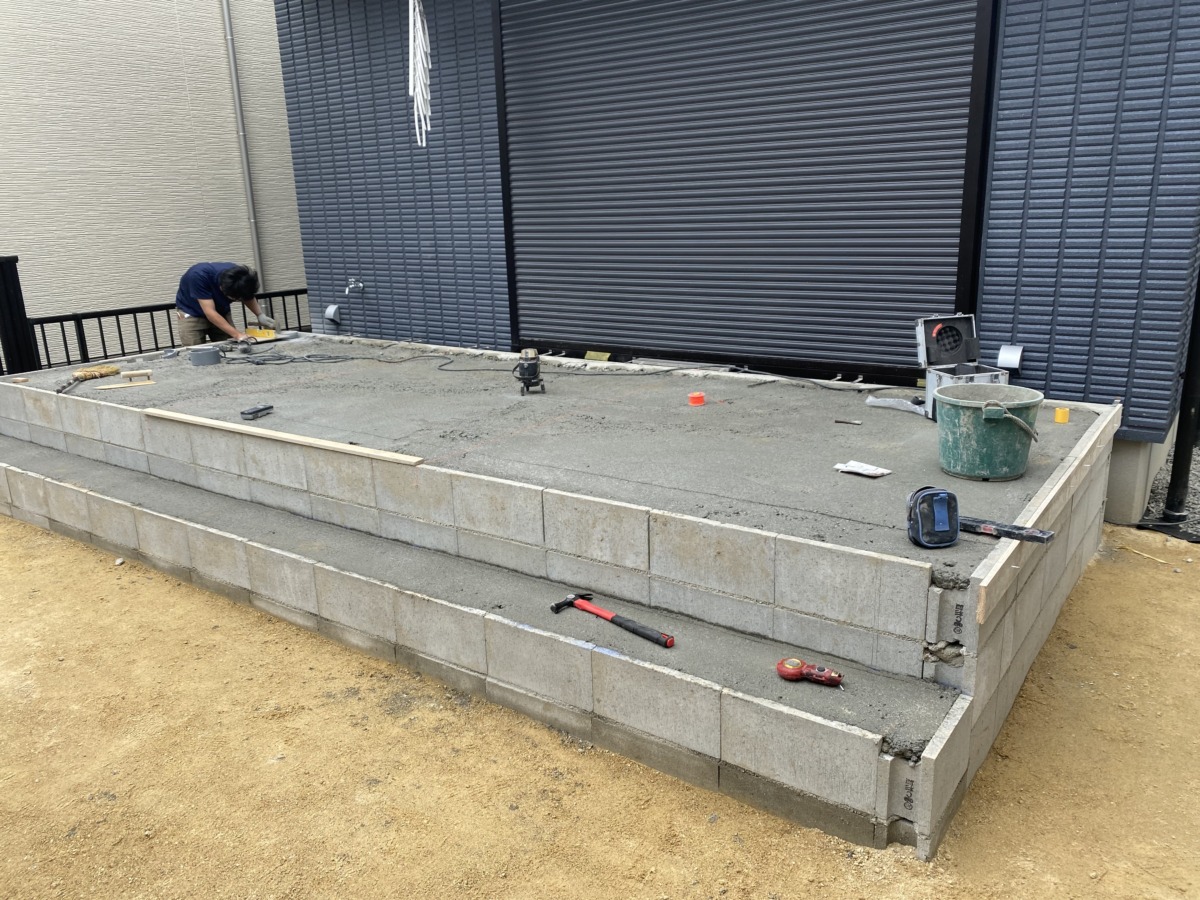タイルテラスの下地が完了しました。