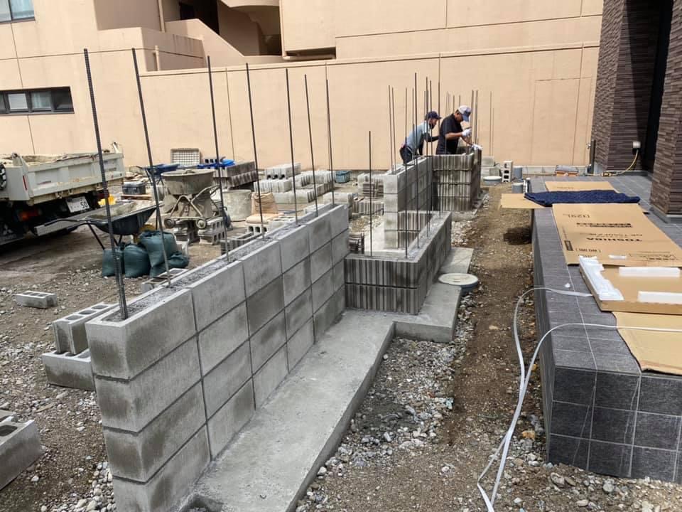 名古屋市昭和区T様邸 ブロック積みの様子