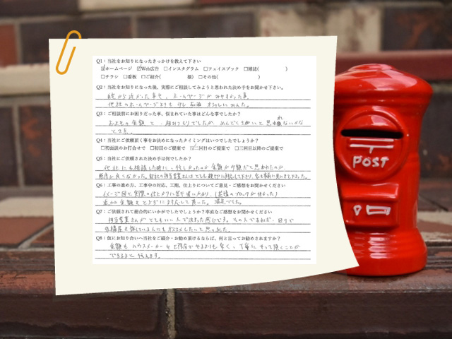 ホームページの印象が良かったので見積依頼をしました。担当営業さんの対応が良くその人であれば周りにもおススメしたいと思いました。名古屋市緑区/M邸