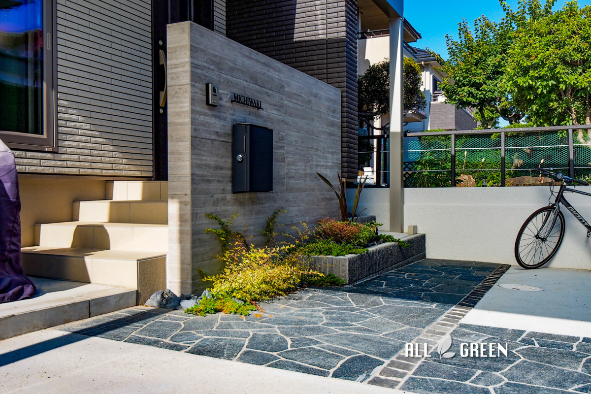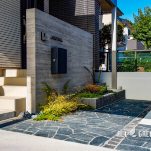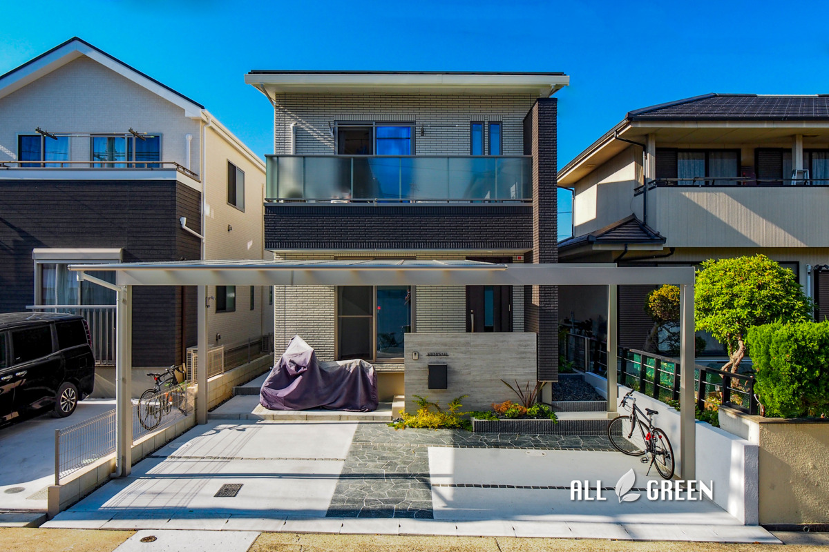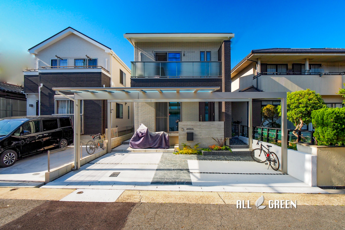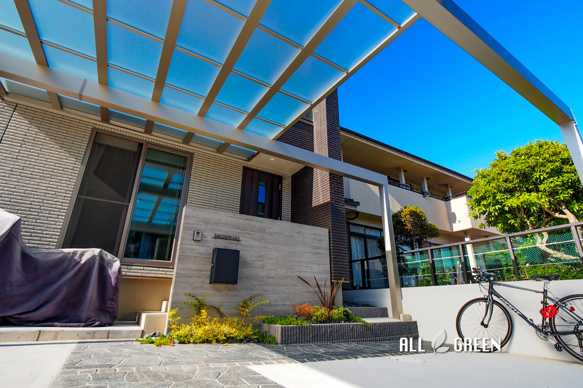 デザインと実用性を兼ね備えたカーポートが出迎える名古屋市天白区の新築外構