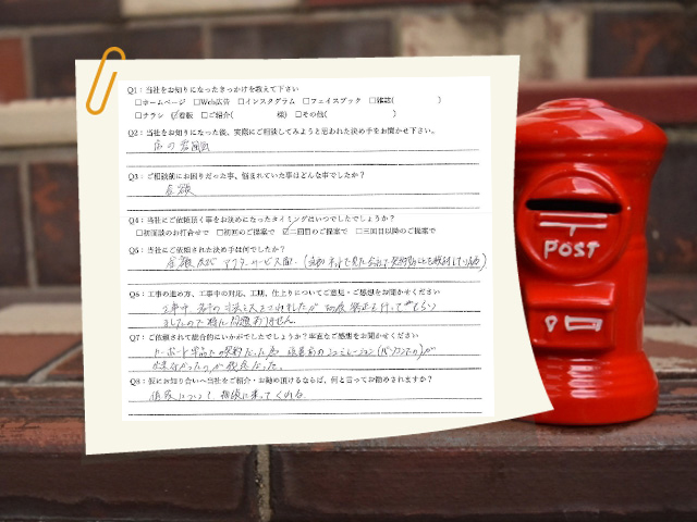Q6:工事の進め方、工事中の対応、工期、仕上がりについてご意見・ご感想をお聞かせください