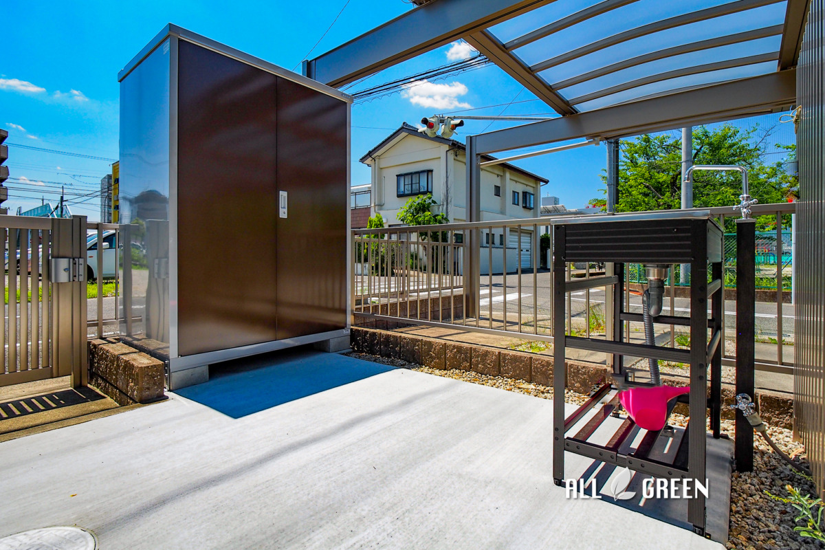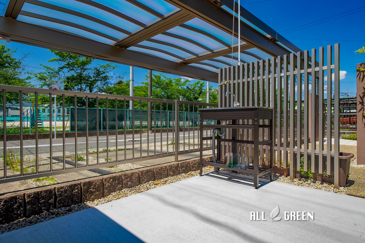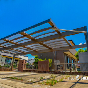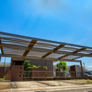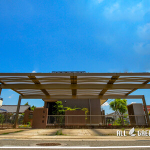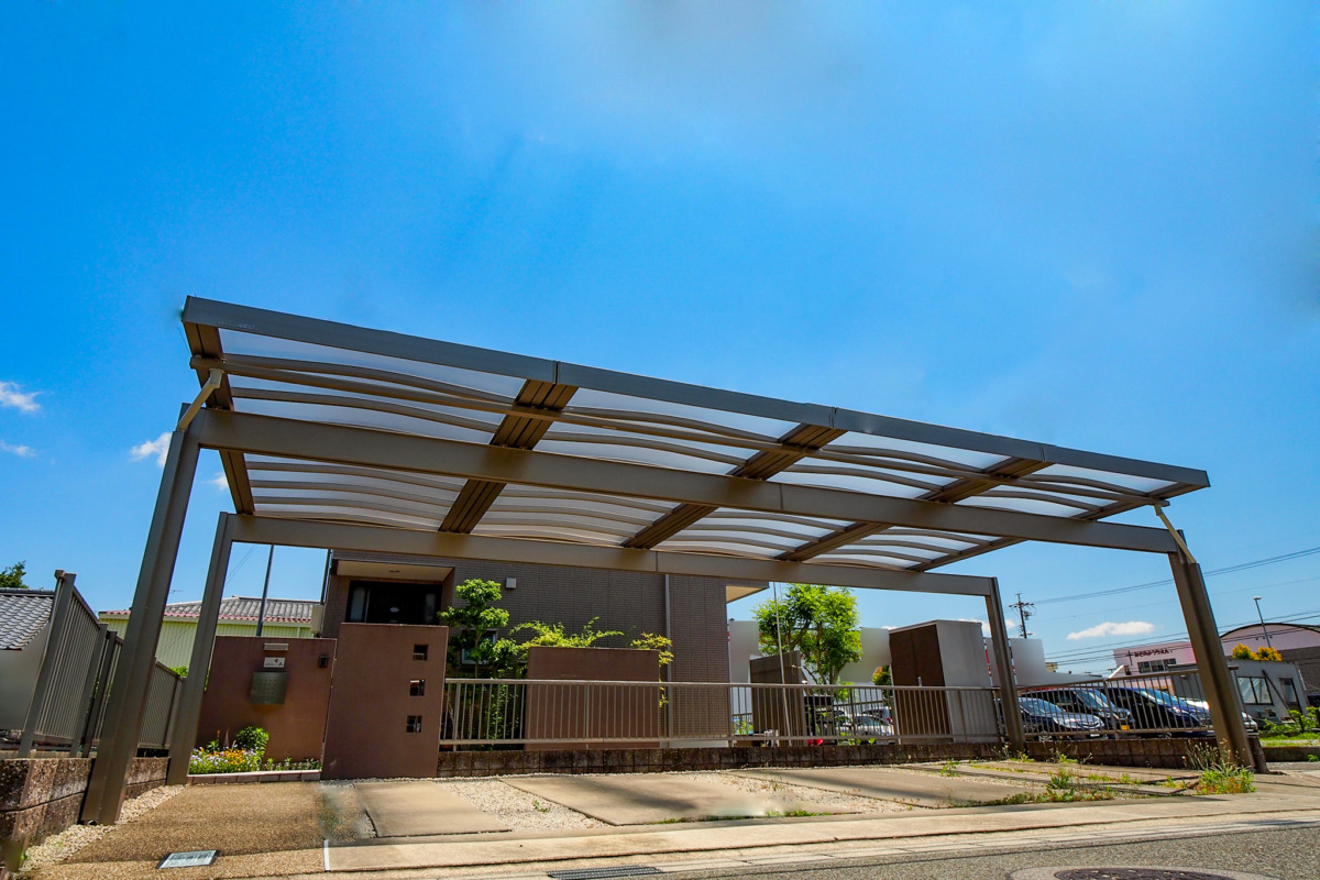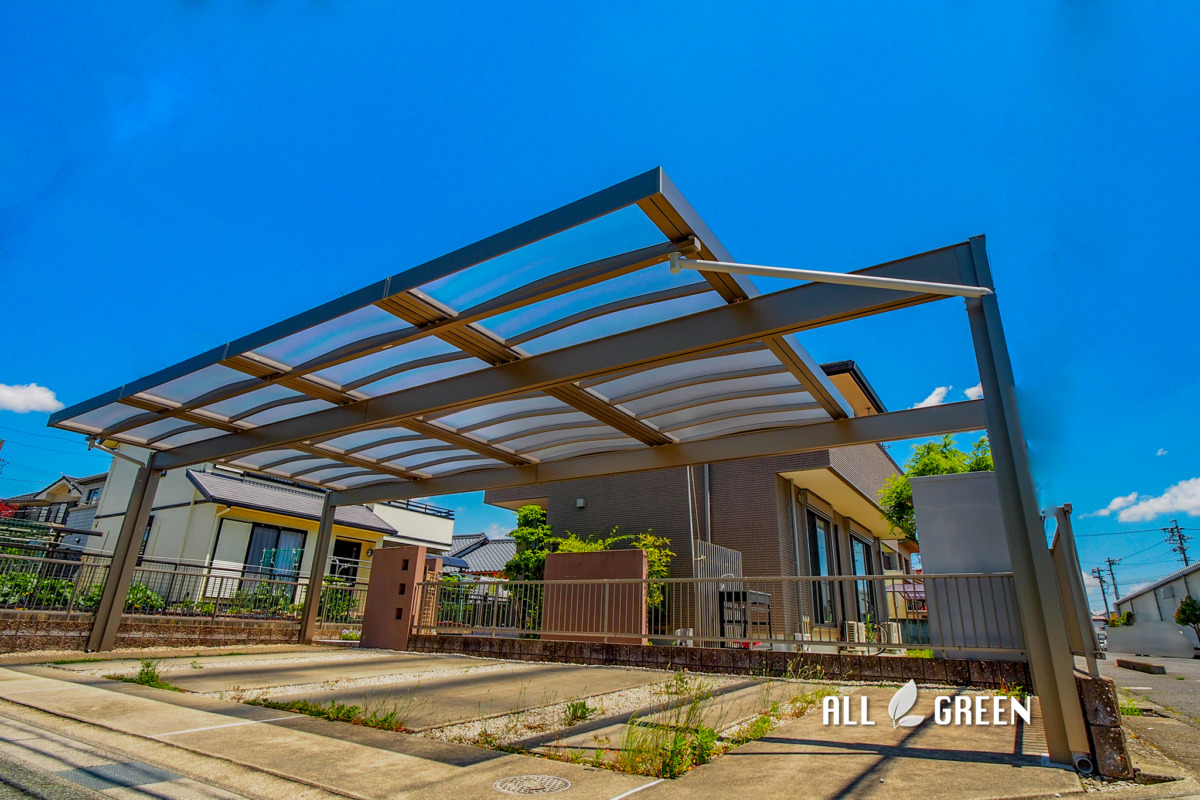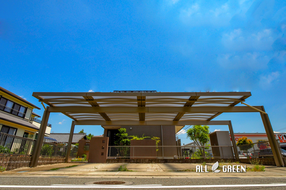 春日井市にある間口の広い駐車スペースに3台用カーポートで印象がガラッと変わったリフォーム外構
