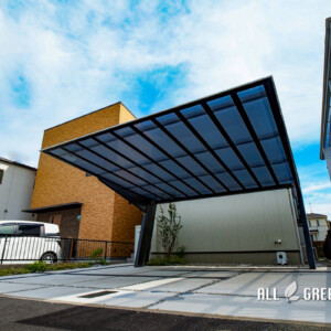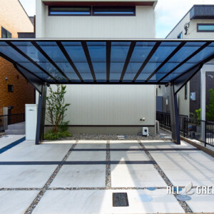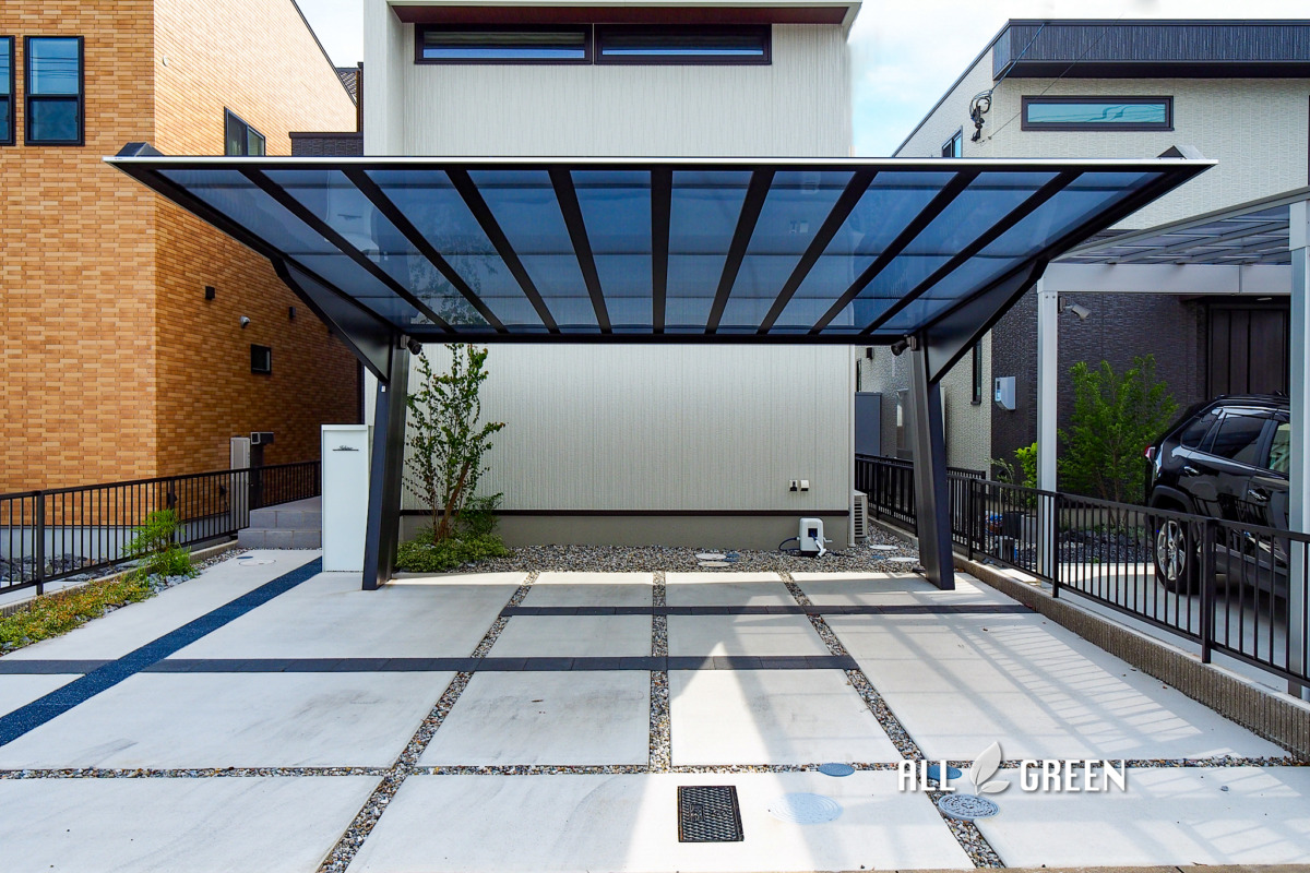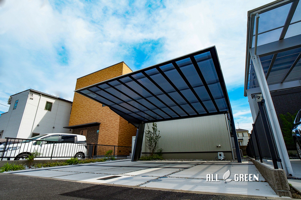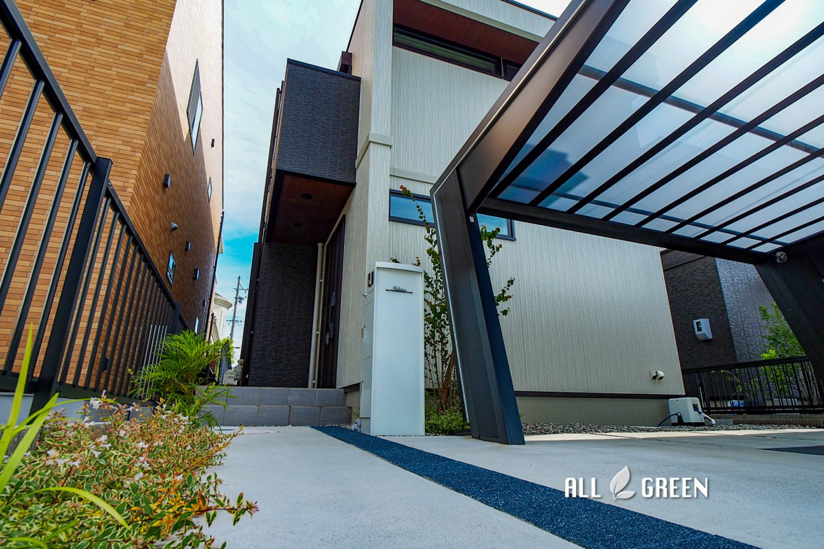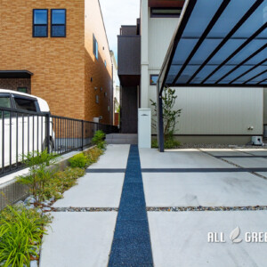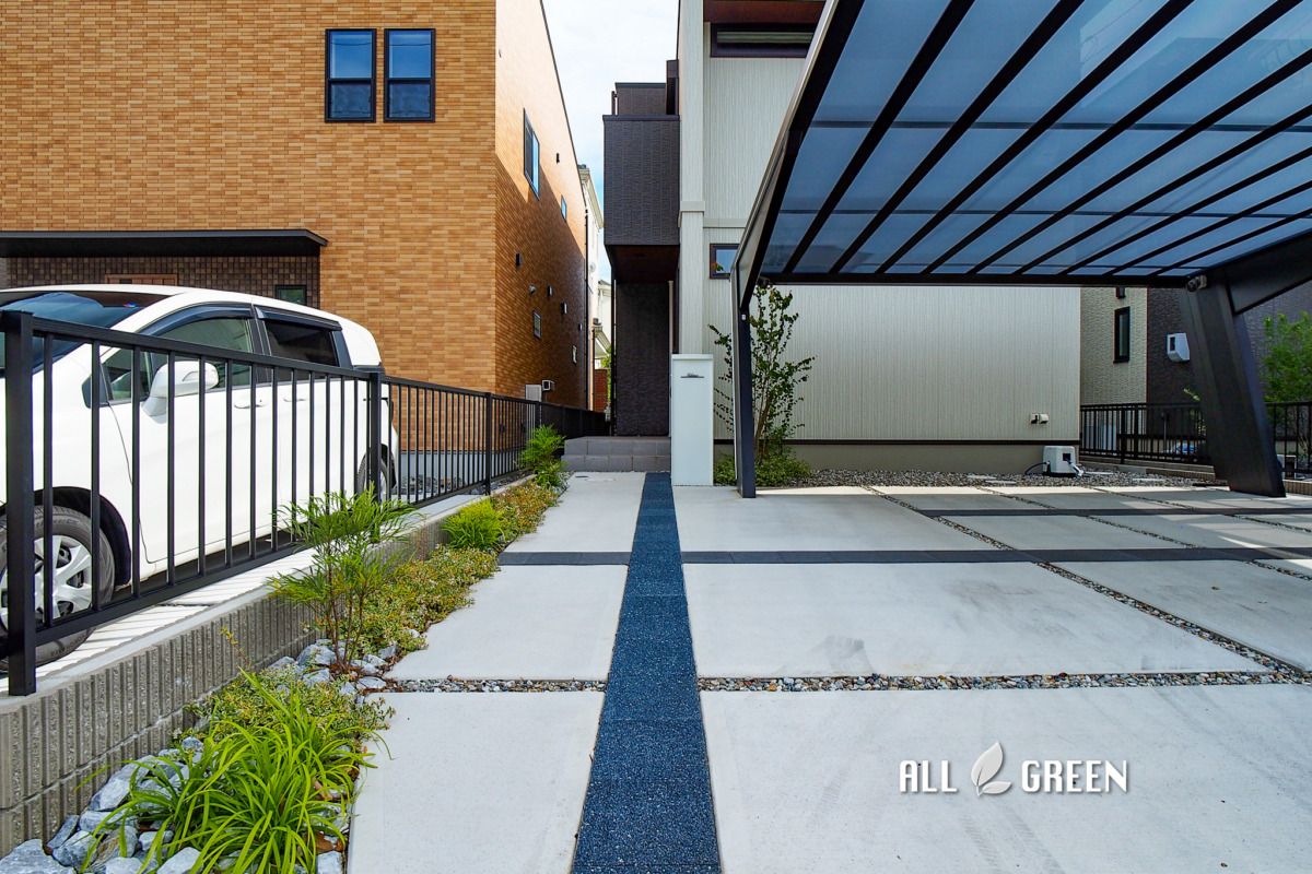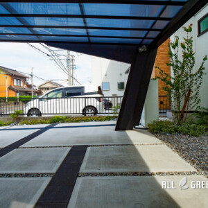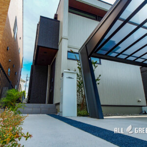 存在感を放つマイポート7がお出迎えする東海市の新築外構