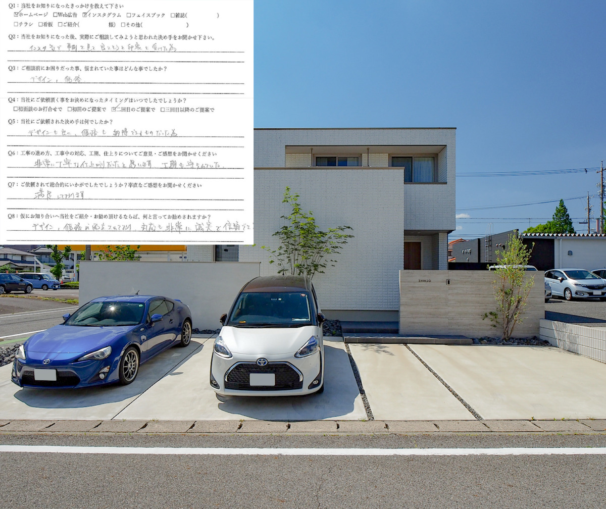 インスタ等で事例を見て良さそうと印象を受けた為相談しました。工期も守られていて、対応も非常に誠実。信頼できます!豊田市/S邸