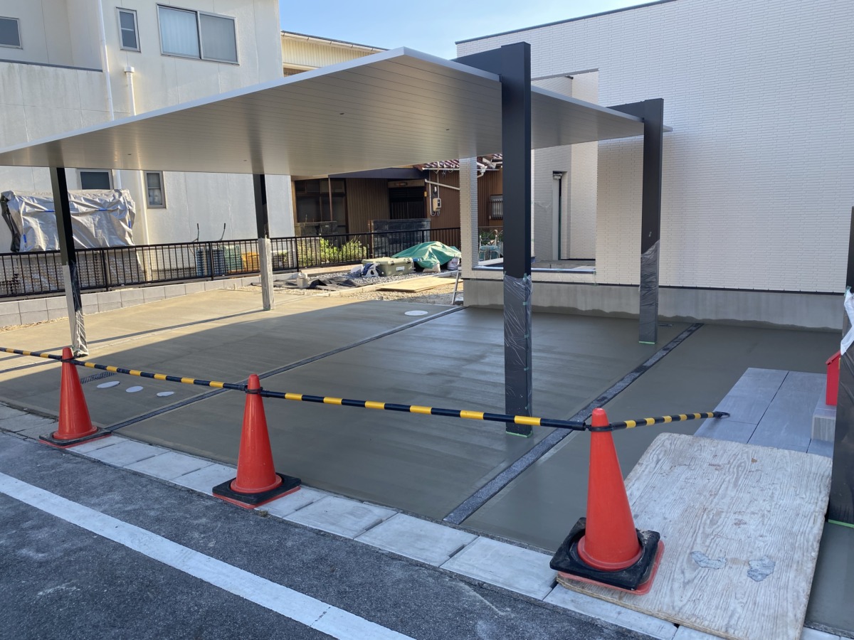 駐車場のコンクリートの打設が完了しました。