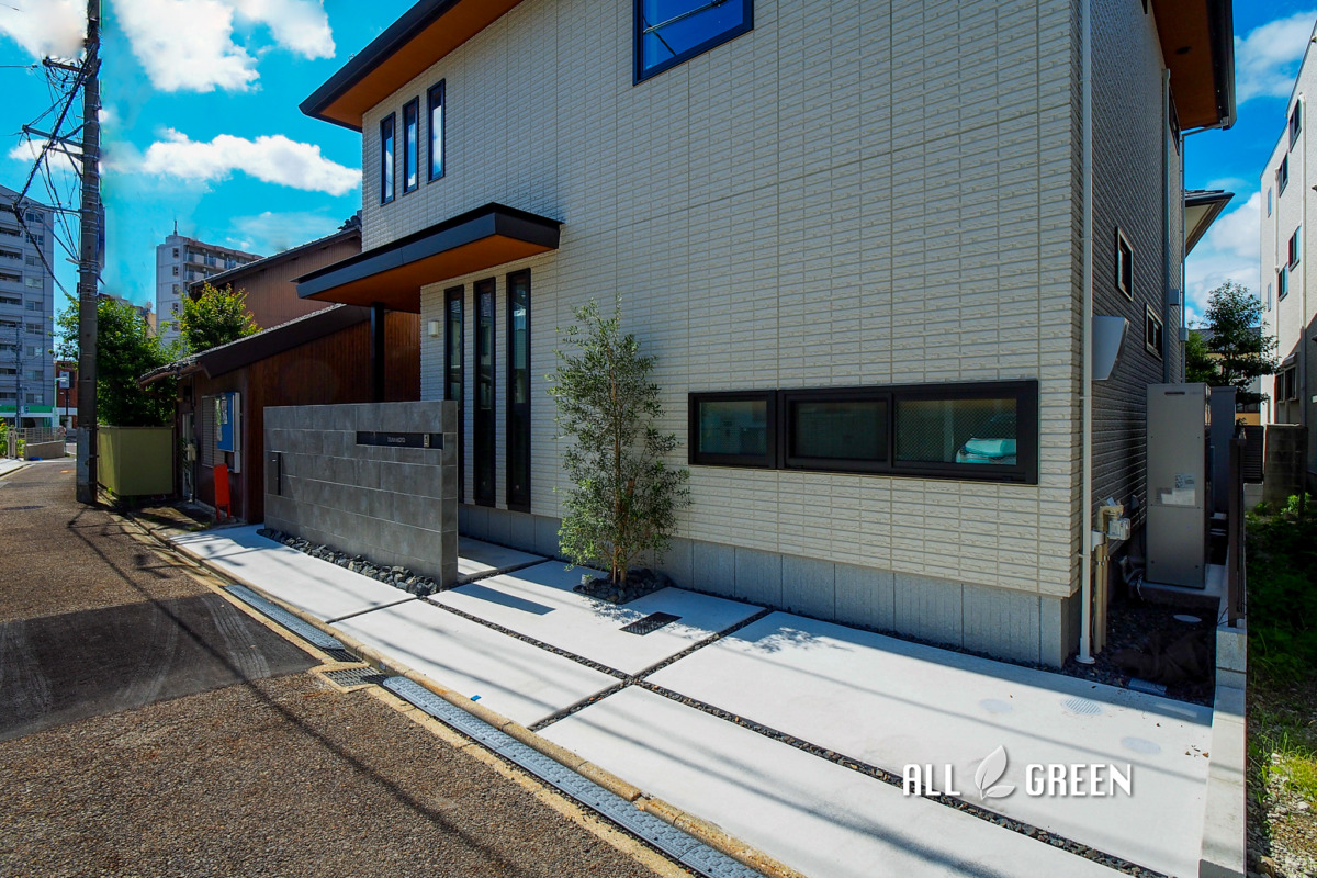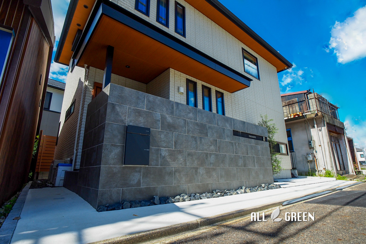 限られたスペースに高級感のある門塀が印象的な新築モダン外構