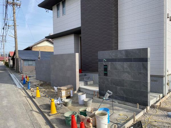 名古屋市港区F様邸 ついに門塀のタイル貼りが完了致しました!!