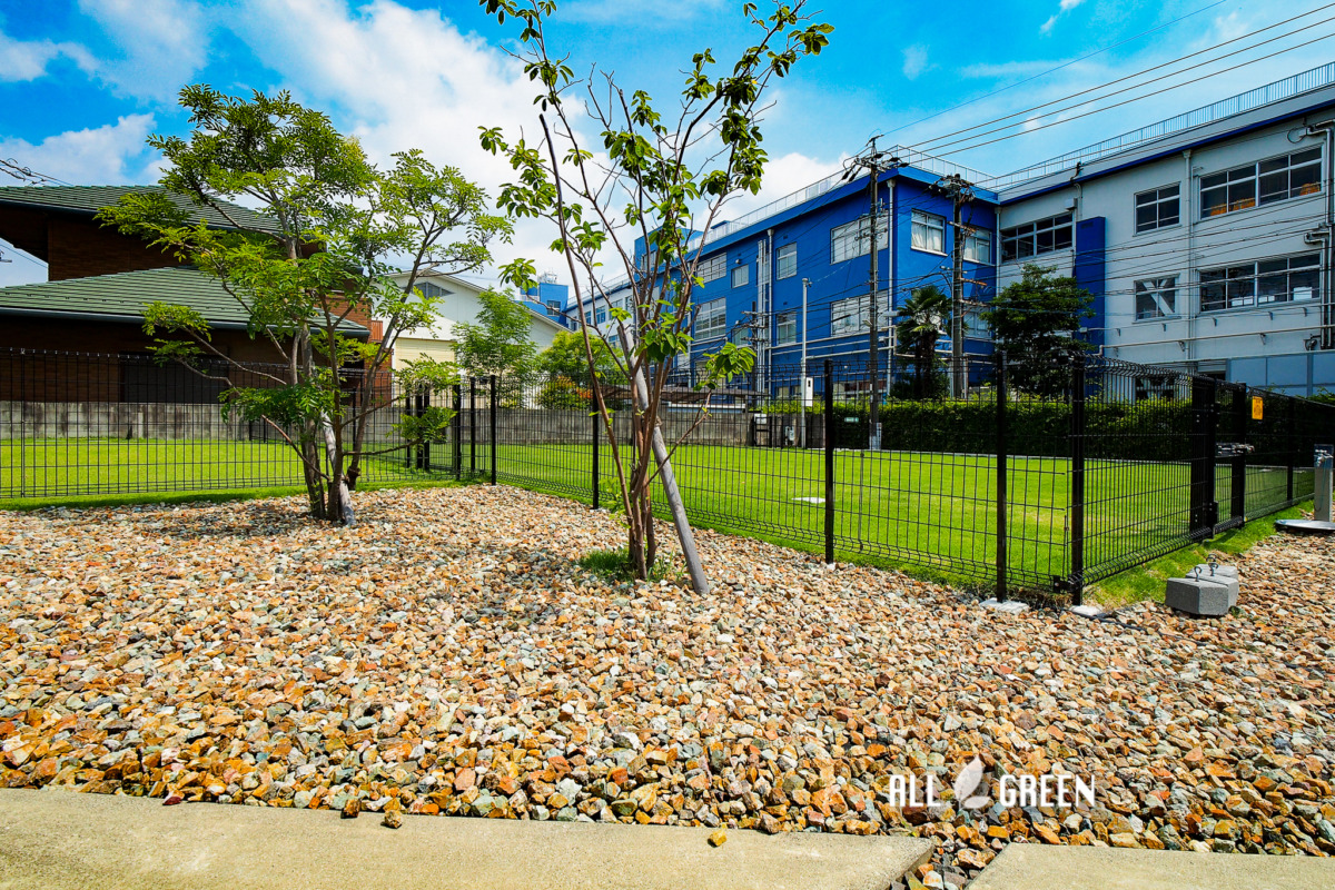 植わっていた植栽は数本だけ残し残りはすべて撤去致しました。残した数本の植栽はドッグラン角に移植し、緑もしっかり楽しめるドッグランとなっています。