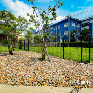 囲っているフェンスはLIXILのハイグリットフェンスを使用しています。それに伴って門扉も同じハイグリット門扉を。