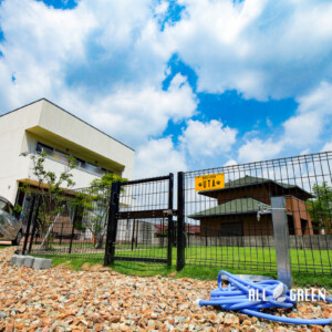 フェンスと天然芝で造り上げた、プライベートドッグラン