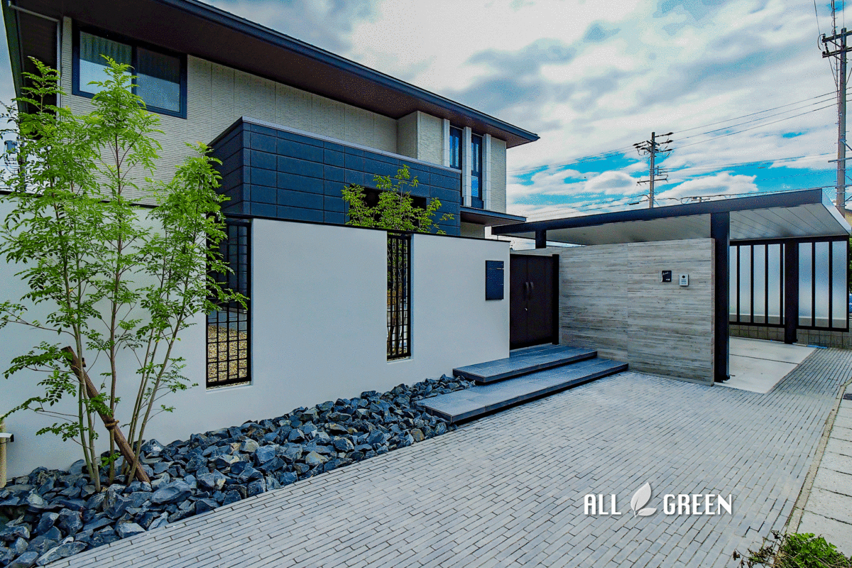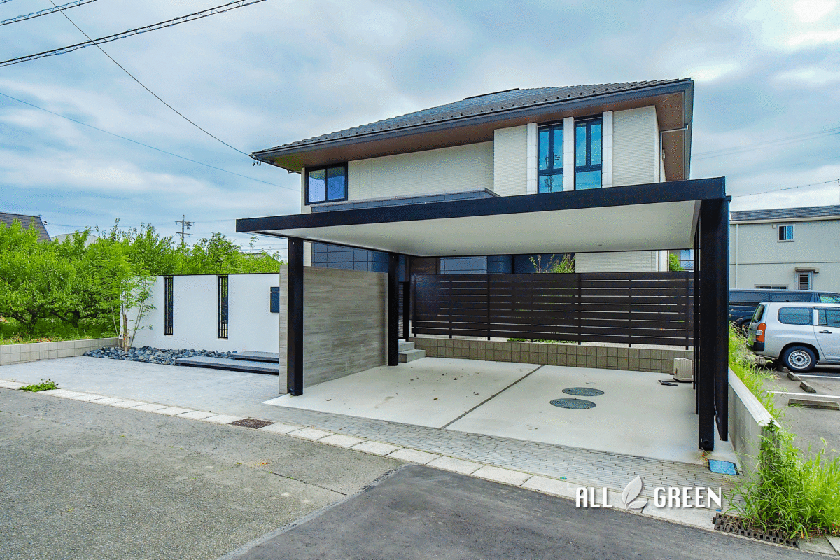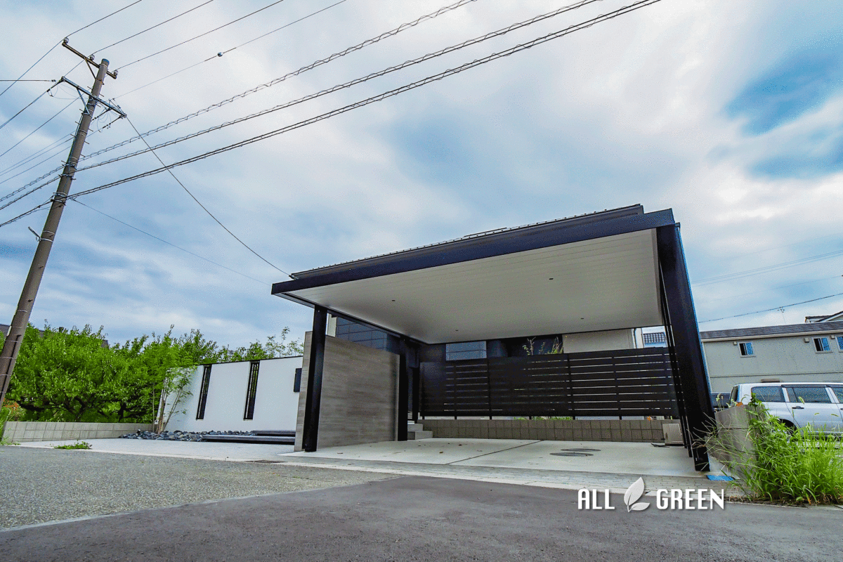 カーポートがカッコいい!あま市にあるシンプルで重厚感たっぷりのクローズ外構