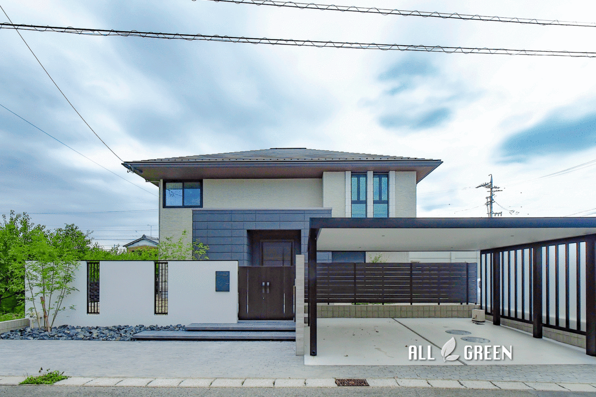 カーポートがカッコいい!あま市にあるシンプルで重厚感たっぷりのクローズ外構