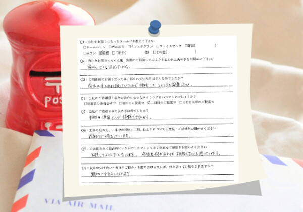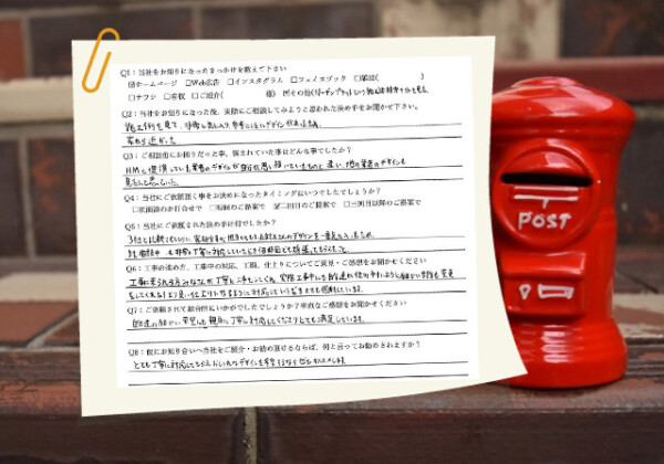 Q1:当社をお知りになったきっかけを教えてください ☑ ホームページ Q2:当社をお知りになった後、実際にご相談し...