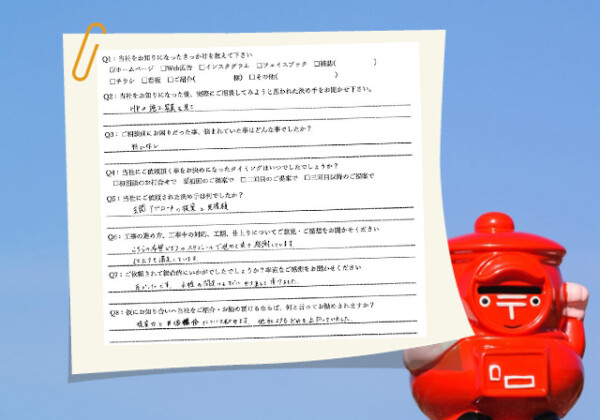 Q1:当社をお知りになったきっかけを教えてください ☑ 看板 Q2:当社をお知りになった後、実際にご相談しようと思...