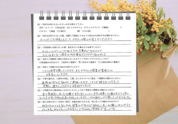Q1:当社をお知りになったきっかけを教えてください ☑ その他( ガーデンプラットという施工店検索サイトを見た )...