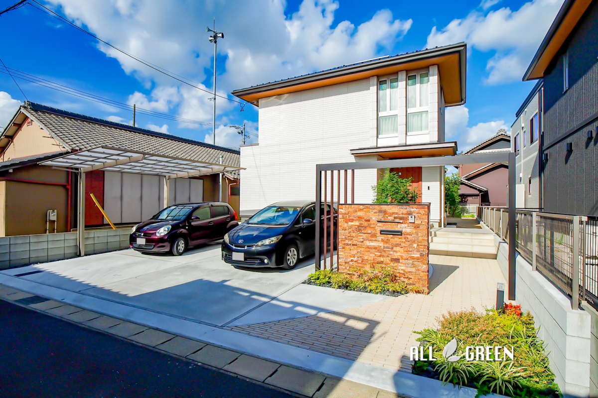 駐車場、カーポート、ゲート、アプローチ、門柱、フェンス、デッキ、照明