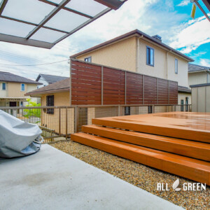 そのため、デッキ前に広がる隣地からの目線を遮る目隠しフェンスを施工。