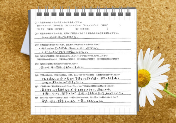 Q1:当社をお知りになったきっかけを教えてください ☑ ホームページ Q2:当社をお知りになった後、実際にご相談し...