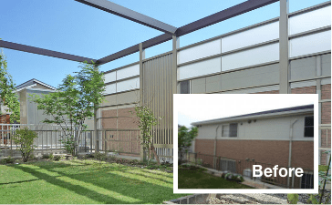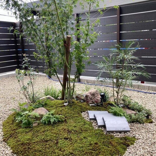 和のテイスト満載の植栽が完成しました。 もみじと苔と瓦で素敵な雰囲気ですね。 リビングから素敵な時間を楽しめそうです。