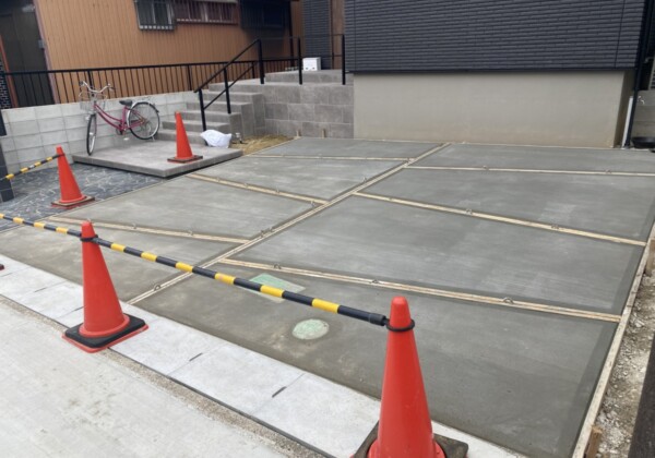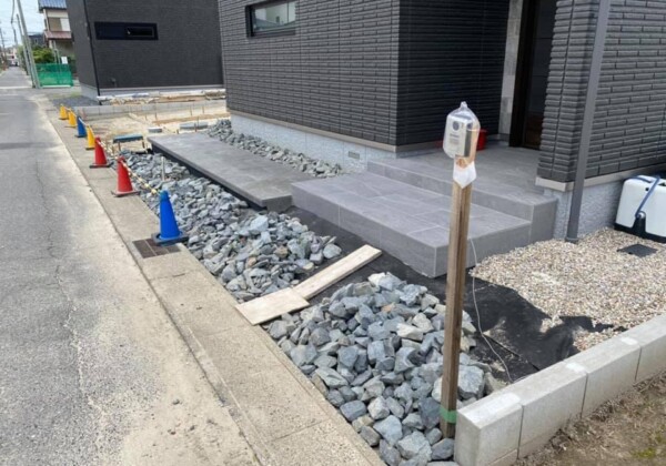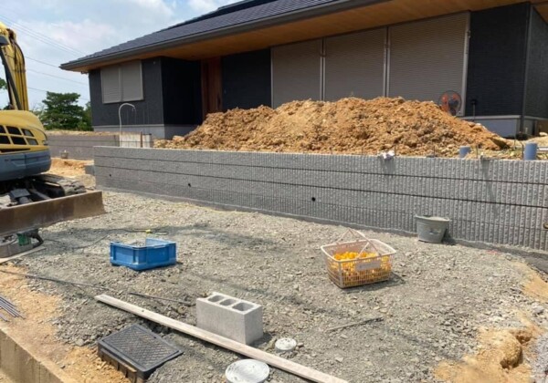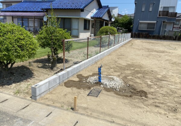 先行工事で境界ブロックが完了しました。 建物が完成したら外構工事がスタートします。