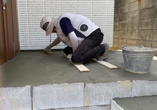 本日の作業は玄関ポーチタイルの下地コンクリート打設です。 タイル工事の重要な作業です。 この下地が綺麗に仕上がってるとタイルも綺...