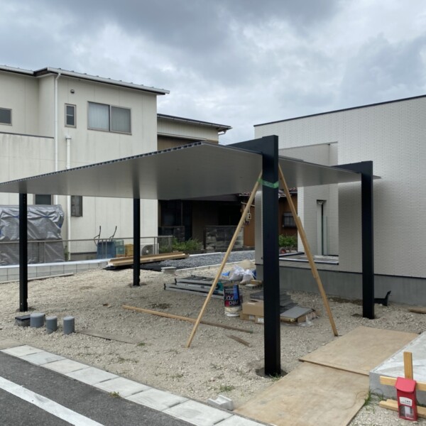 カーポートが完成しました。 屋根にはダウンライトが付いてますので 夜の雰囲気も良さそうですね。 機能門柱もスッキリとした製品なの...
