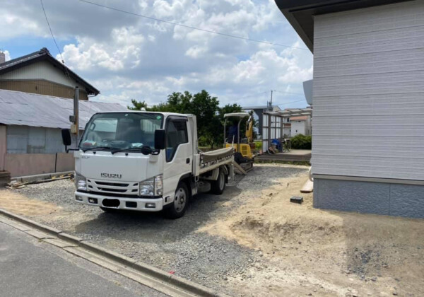 本日より着工しました。 さて、どんな外構になるか楽しみですね。 最後まで頑張ります!