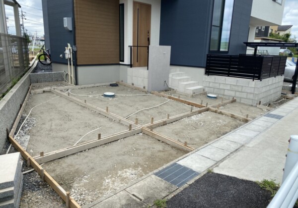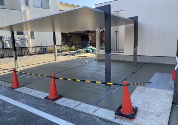 駐車場のコンクリートの打設が完了しました。 この暑さの中想像以上に乾きが早く 大変でしたが綺麗に仕上がりました。 完成までラスト...
