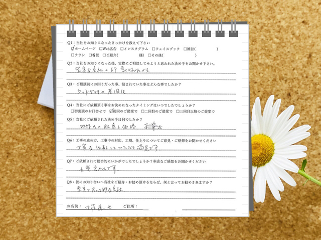 Q6:工事の進め方、工事中の対応、工期、仕上がりについてご意見・ご感想をお聞かせください