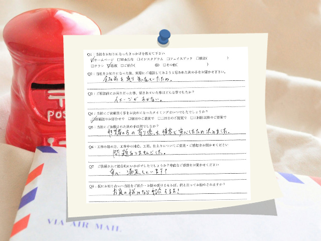 Q6:工事の進め方、工事中の対応、工期、仕上がりについてご意見・ご感想をお聞かせください