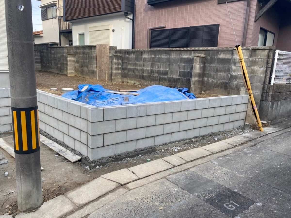 建物に沿うように積み上げられたブロックの手前には土になっているスペースが👀
