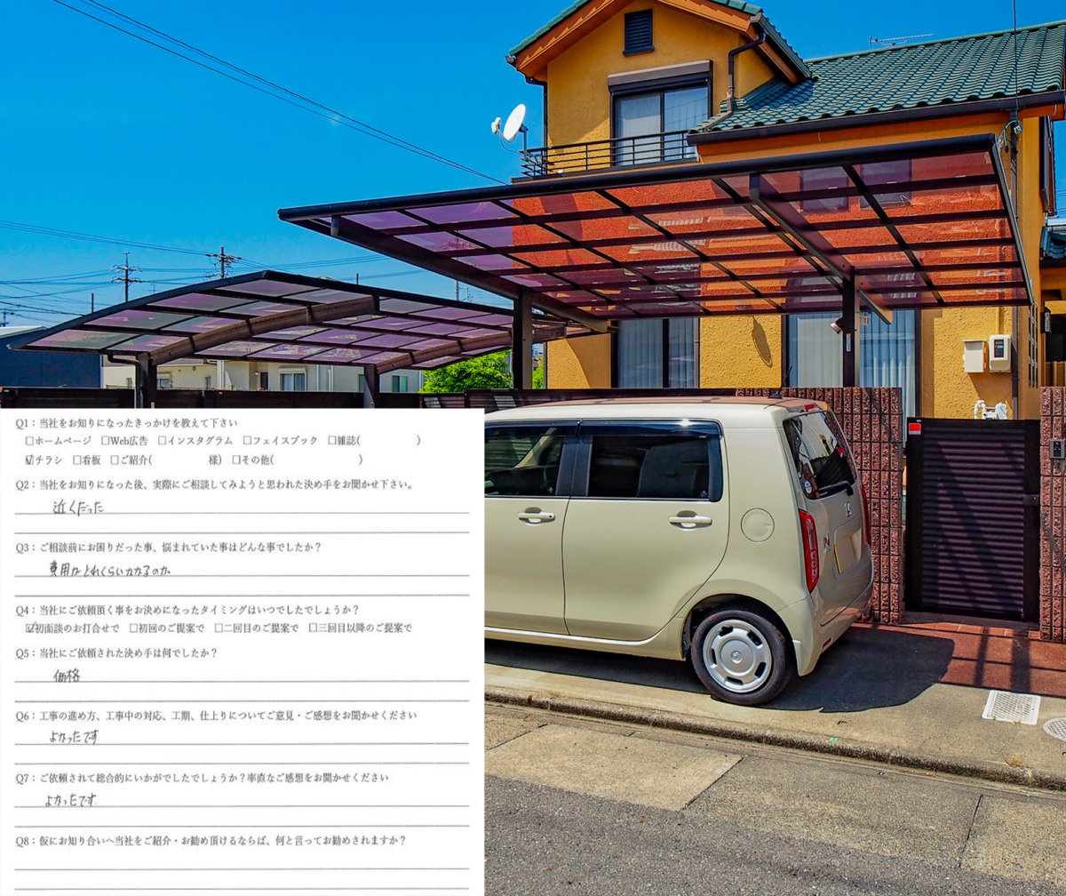 チラシを見て家から近くだったため相談に伺いました。費用がどのくらいかかるか不安でしたが納得の価格で依頼を決めました。工事の仕上がりや進め方も問題なく良かったです。名古屋市中川区/N邸