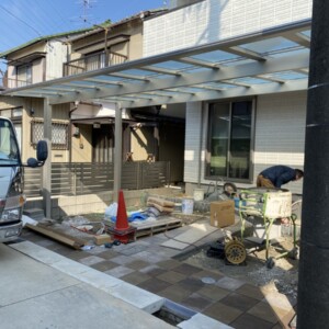 昨日は施工中のカーポートと出入り口前のステップを載せたところで終わってましたよね❗❗