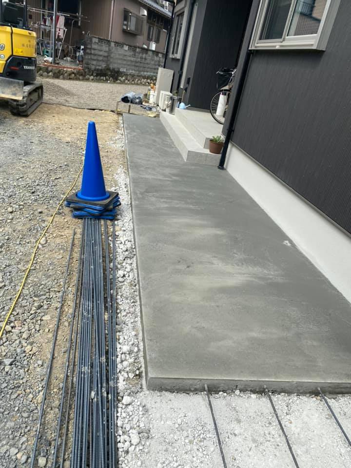 具体的にはコンクリートを打つことで雑草や苔が生えるのを抑える事ができ、雨の日などはコンクリートの上を歩けば靴を濡らしたり汚したりせずに歩くことが出来ます。