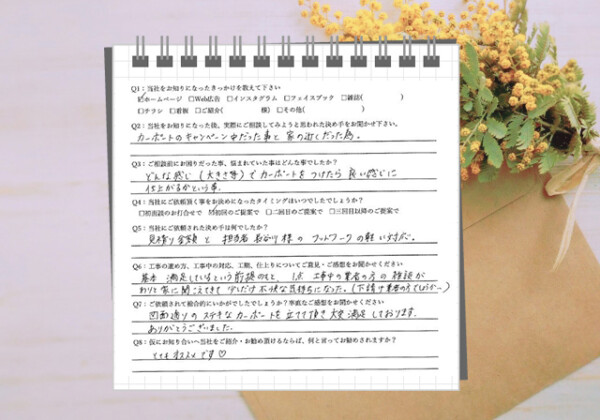 Q1:当社をお知りになったきっかけを教えてください ☑ ホームページ Q2:当社をお知りになった後、実際にご相談し...