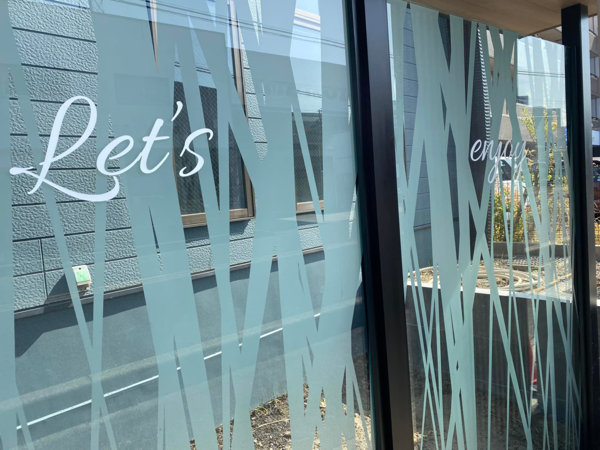 ガラスにはお洒落な模様とオールグリーンがコンセプトとして掲げている ” Let’s enjoy a garden life ” の文字が😋