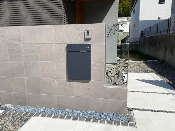 そっか❗❗だから門塀の角が欠けたデザインの壁になっていたんですね👏で、そこにガラスをはめた・・・と💡謎がすべて解決いたしました❗❗