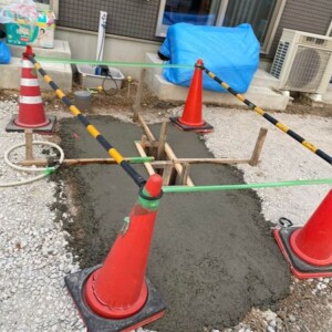 アプローチの洗い出しコンクリート打設後、カーポート下などの土間コンクリートの打設が始まりました⭐