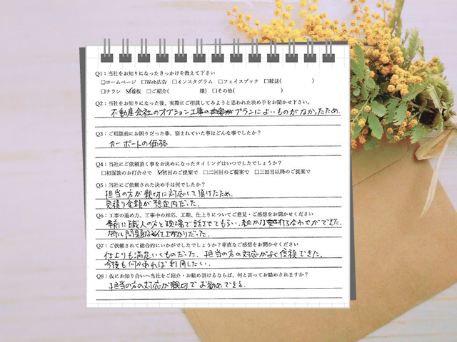 Q6:工事の進め方、工事中の対応、工期、仕上がりについてご意見・ご感想をお聞かせください
