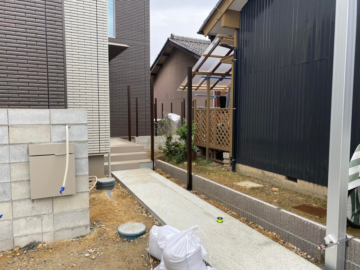 建物の形状上、玄関扉をあけてすぐお隣さんの敷地がみえるようになってしまっているので目隠しフェンスがあるとお互いにとって過ごしやすい空間になります💡