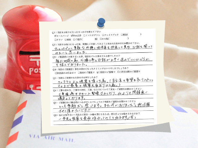 Q7:ご依頼されて総合的にいかがでしたでしょうか?率直なご感想をお聞かせください