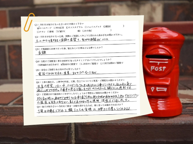 Q6:工事の進め方、工事中の対応、工期、仕上がりについてご意見・ご感想をお聞かせください