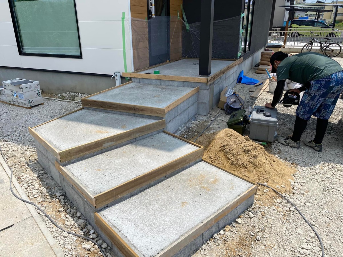 おおお👀階段に型枠のようなものが設置され、いよいよ・・・❗❗いよいよタイル貼りが開始されます😙👏
