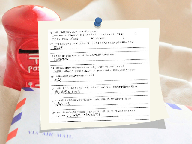 Q6:工事の進め方、工事中の対応、工期、仕上がりについてご意見・ご感想をお聞かせください