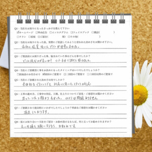 1つ1つの仕事がバラバラで、仕上り後の説明もまちまちで、特に植栽の対応がなく枯れてしまわないかと心配しています。
