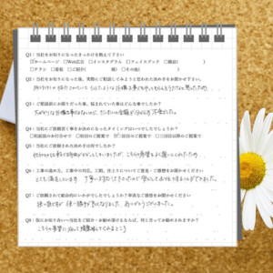 Q6:工事の進め方、工事中の対応、工期、仕上がりについてご意見・ご感想をお聞かせください